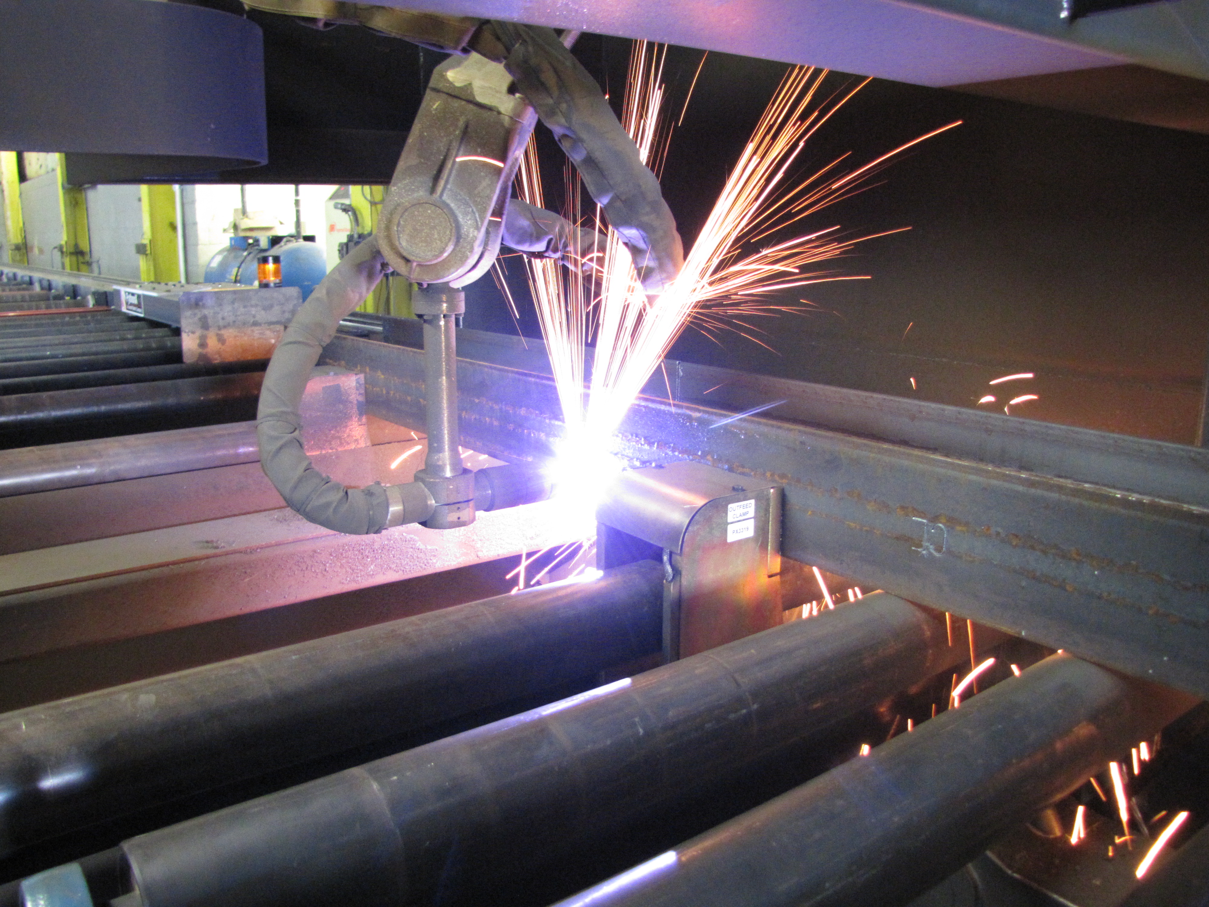 We have three fabrication shops totaling 133,000 square feet where we are fully equipped to custom fabricate structural steel, plate work, chutes, bins, ductwork, piping, conveying equipment, handrail, and miscellaneous steel. Recent additions to our shop include a computerized beamline, semi-automatic welding systems, and burn tables. Our shops have a combined fabrication capability of 400,000 pounds of steel per month.